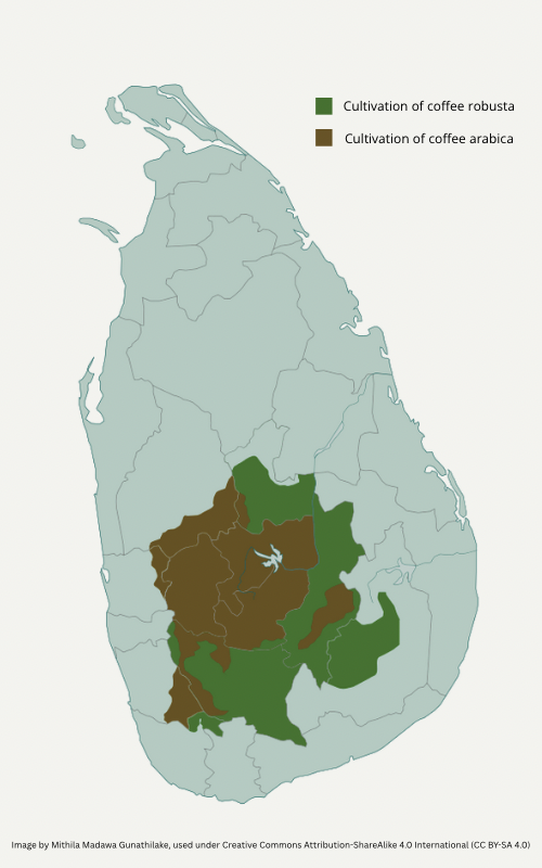 Our beans are grown in the central highlands of Sri Lanka, including Nuwara Eliya, Kandy, Matale, and Badulla.